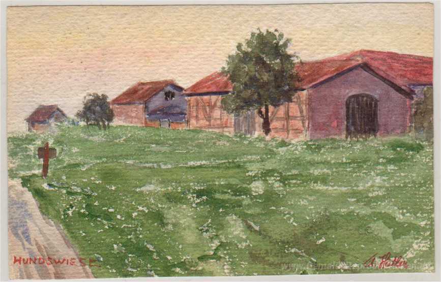Wir bieten Ihnen eine handgefertigte Reproduktion auf Leinwand des berühmten Kunstwerks 'Hundswiese Bauernhof' von Adolf Hitler, aus dem Reproduktionsmuseum.