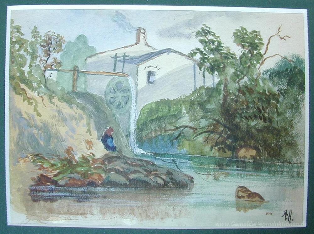 Wir bieten Ihnen eine handgefertigte Reproduktion auf Leinwand des berühmten Kunstwerks 'Millhouse' von Adolf Hitler, aus dem Reproduktionsmuseum.