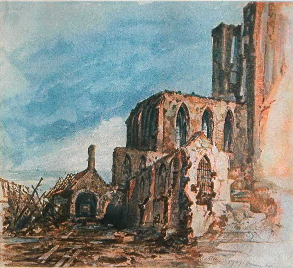 Wir bieten Ihnen eine handgefertigte Reproduktion auf Leinwand des berühmten Kunstwerks 'Ruinen eines Klosters in Messines' von Adolf Hitler, aus dem Reproduktionsmuseum.