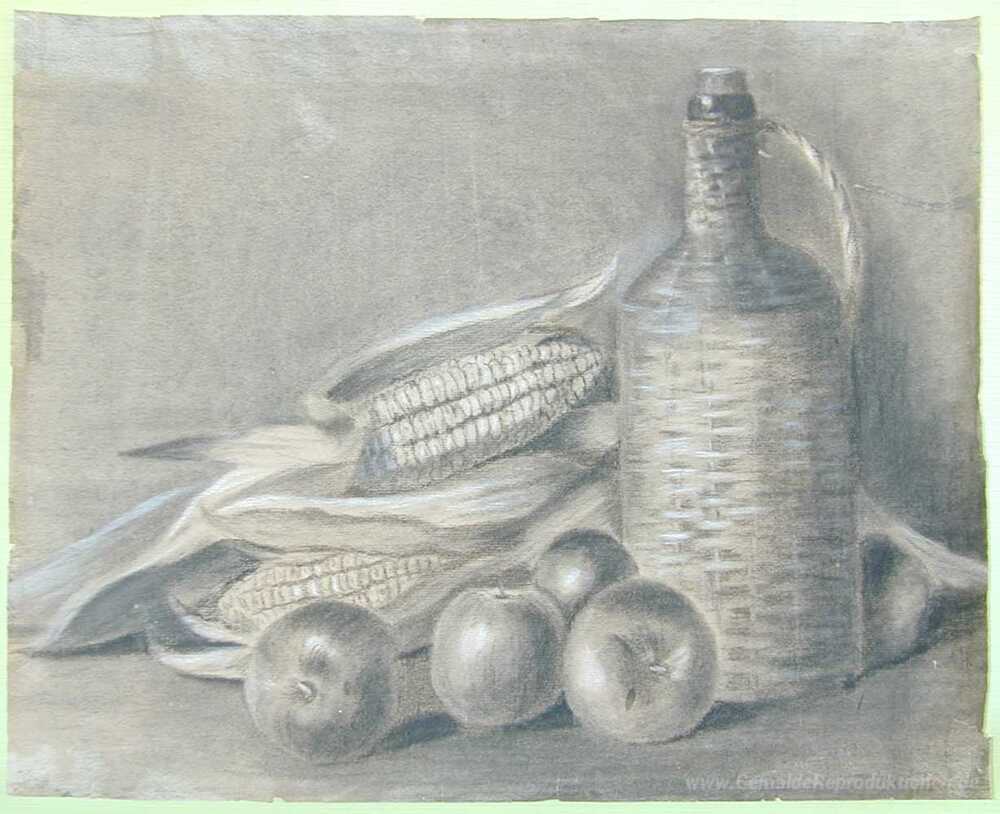 Wir bieten Ihnen eine handgefertigte Reproduktion auf Leinwand des berühmten Kunstwerks 'Stillleben mit Flasche und Obst' von Adolf Hitler, aus dem Reproduktionsmuseum.