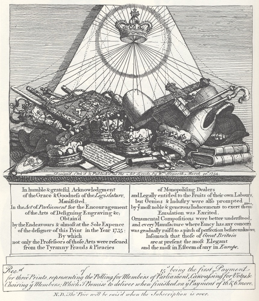 Wir bieten Ihnen eine handgefertigte Reproduktion auf Leinwand des berühmten Kunstwerks 'Abblasen über sein neues Urheberrechtsgesetz' von William Hogarth, aus dem Reproduktionsmuseum.
