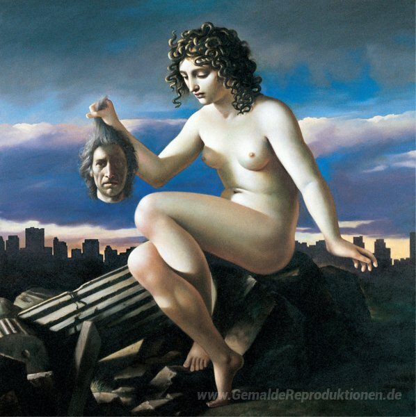 Wir bieten Ihnen eine handgefertigte Reproduktion auf Leinwand des berühmten Kunstwerks 'Allegoria della critica' von Carlo Maria Mariani, aus dem Reproduktionsmuseum.