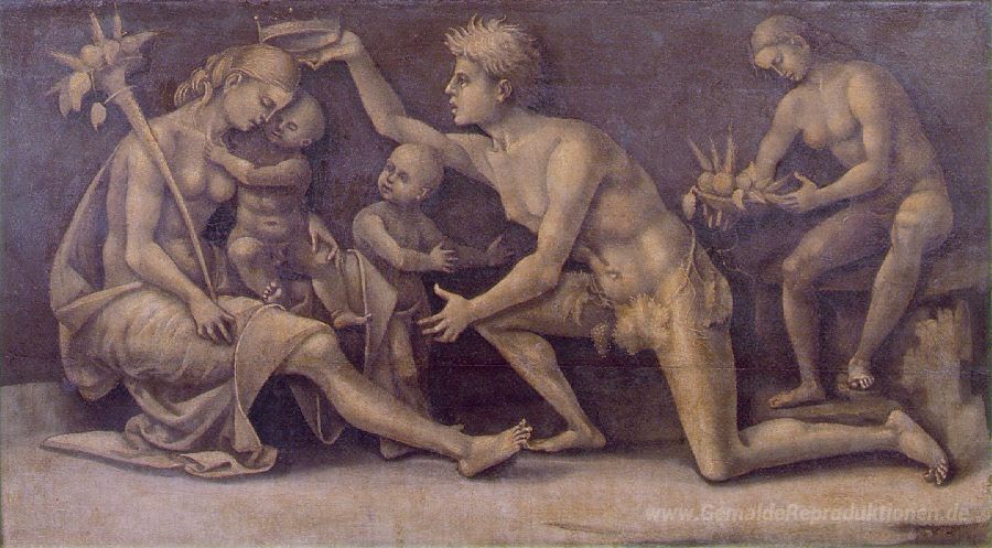 Wir bieten Ihnen eine handgefertigte Reproduktion auf Leinwand des berühmten Kunstwerks 'Allegorie der Fruchtbarkeit und des Überflusses' von Luca Signorelli, aus dem Reproduktionsmuseum.