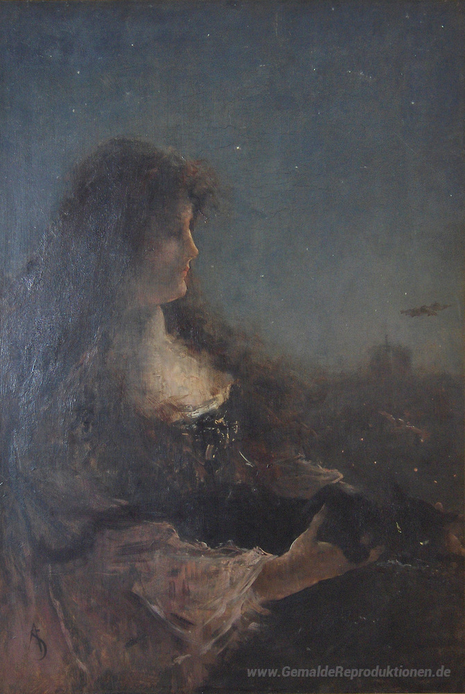 Wir bieten Ihnen eine handgefertigte Reproduktion auf Leinwand des berühmten Kunstwerks 'Allegorie der Nacht' von Alfred Stevens, aus dem Reproduktionsmuseum.