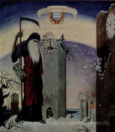 Wir bieten Ihnen eine handgefertigte Reproduktion auf Leinwand des berühmten Kunstwerks 'Allegorie des Jahres 1916 (Chronos)' von Heorhiy Narbut, aus dem Reproduktionsmuseum.