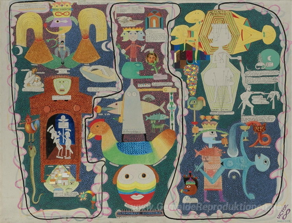 Wir bieten Ihnen eine handgefertigte Reproduktion auf Leinwand des berühmten Kunstwerks 'Autobiografische Malerei - Biosensible Ultrapainting' von Victor Brauner, aus dem Reproduktionsmuseum.