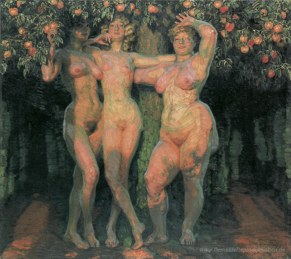 Wir bieten Ihnen eine handgefertigte Reproduktion auf Leinwand des berühmten Kunstwerks 'Autumn Sun, drei Göttinnen' von Frantisek Kupka, aus dem Reproduktionsmuseum.