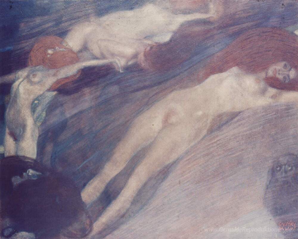 Wir bieten Ihnen eine handgefertigte Reproduktion auf Leinwand des berühmten Kunstwerks 'Bewegte Wasser' von Gustav Klimt, aus dem Reproduktionsmuseum.