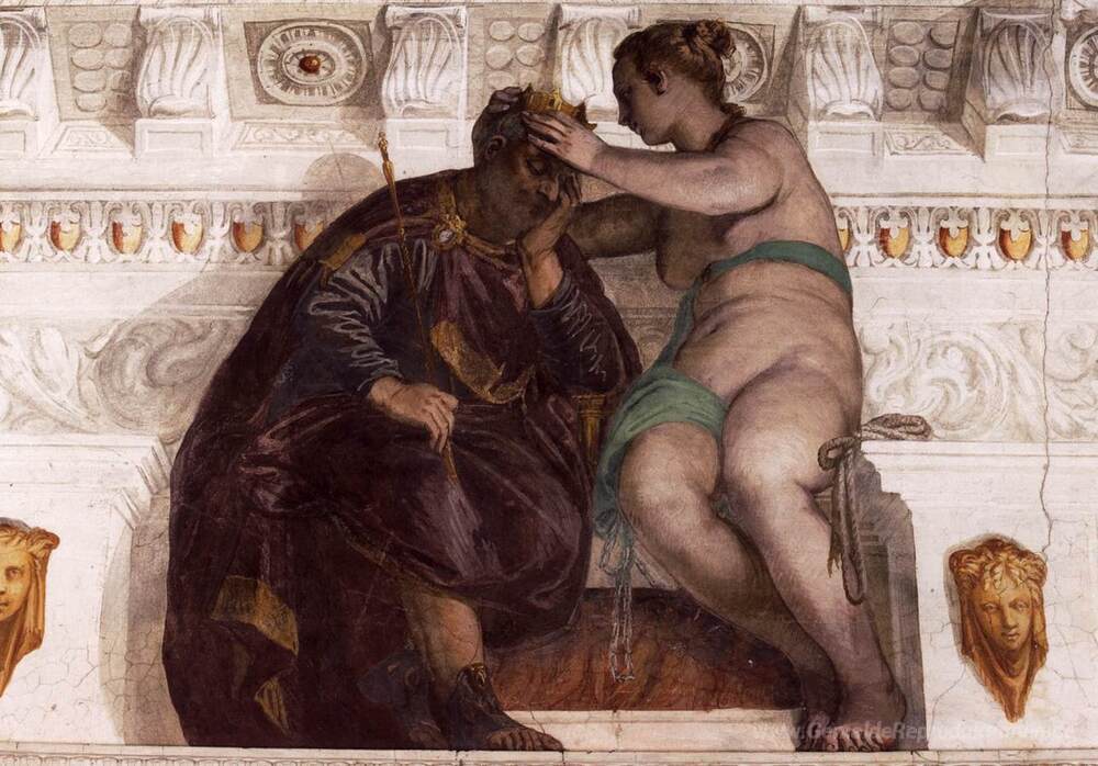 Wir bieten Ihnen eine handgefertigte Reproduktion auf Leinwand des berühmten Kunstwerks 'Chance Krönung einer Sleeping Man' von Paolo Veronese, aus dem Reproduktionsmuseum.