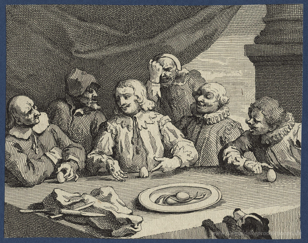 Wir bieten Ihnen eine handgefertigte Reproduktion auf Leinwand des berühmten Kunstwerks 'Columbus Breaking the Egg (Christopher Columbus)' von William Hogarth, aus dem Reproduktionsmuseum.