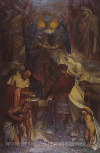 Wir bieten Ihnen eine handgefertigte Reproduktion auf Leinwand des berühmten Kunstwerks 'Court of Death' von George Frederick Watts, aus dem Reproduktionsmuseum.