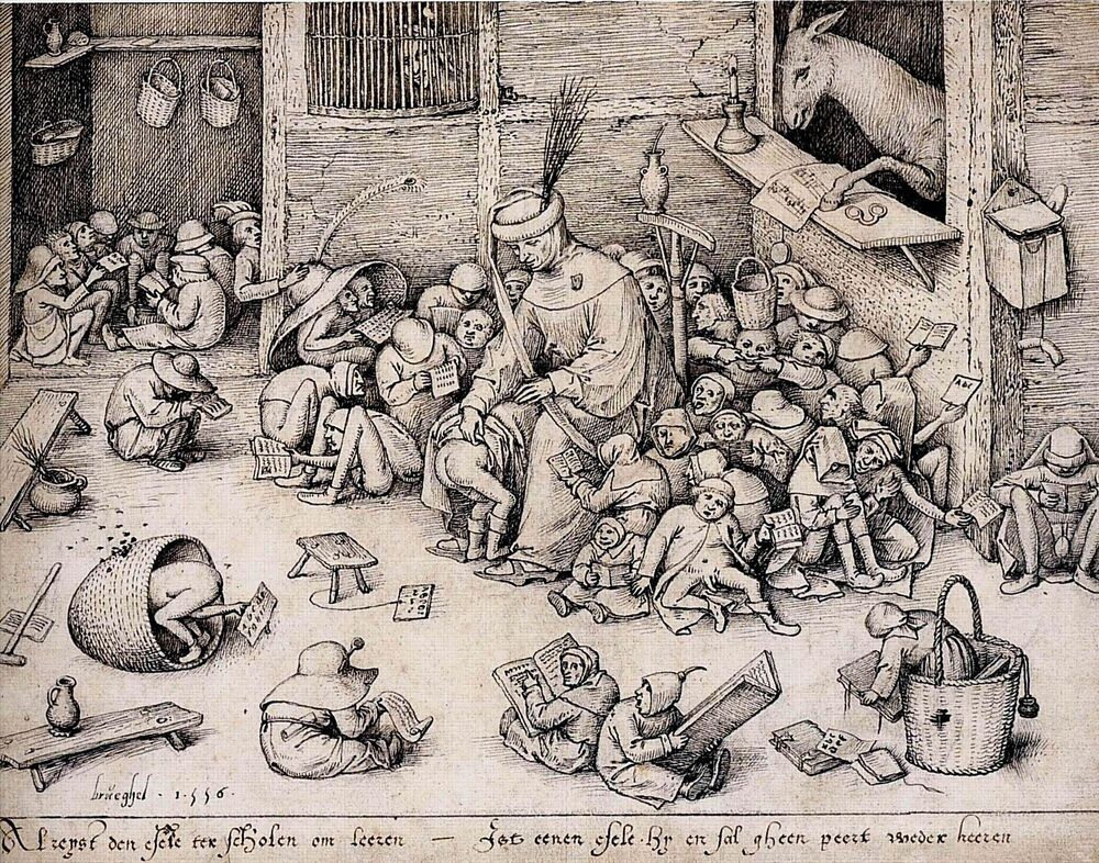 Wir bieten Ihnen eine handgefertigte Reproduktion auf Leinwand des berühmten Kunstwerks 'Das Ass in der Schule' von Pieter Bruegel the Elder, aus dem Reproduktionsmuseum.