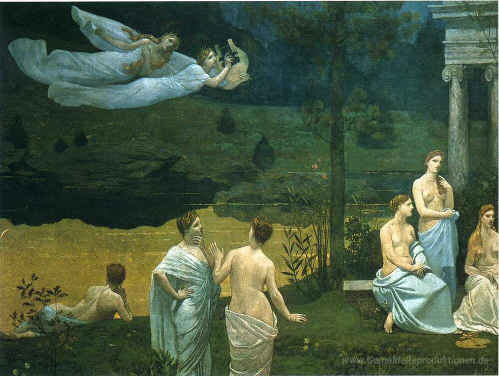 Wir bieten Ihnen eine handgefertigte Reproduktion auf Leinwand des berühmten Kunstwerks 'Das heilige Holz durch die Künste und die Musen Cherished (Detai' von Pierre Puvis de Chavannes, aus dem Reproduktionsmuseum.