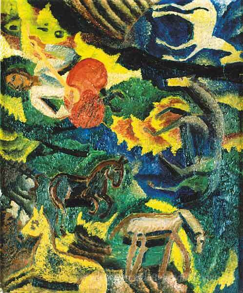 Willkommen in unserer erlesenen Kollektion von Ölgemälden, wo Kunst und Eleganz aufeinandertreffen. Jedes Werk erzählt eine Geschichte, die tief mit dem Leben und den Emotionen des Künstlers verbunden ist. Ein herausragendes Beispiel ist Das Leben der Kosaken, geschaffen von dem visionären Künstler David Burliuk. Burliuk, oft als Vater des russischen Futurismus bezeichnet, verbindet in seinen Arbeiten kraftvolle Farben und dynamische Formen, die den Betrachter in eine lebendige Welt eintauchen lassen.