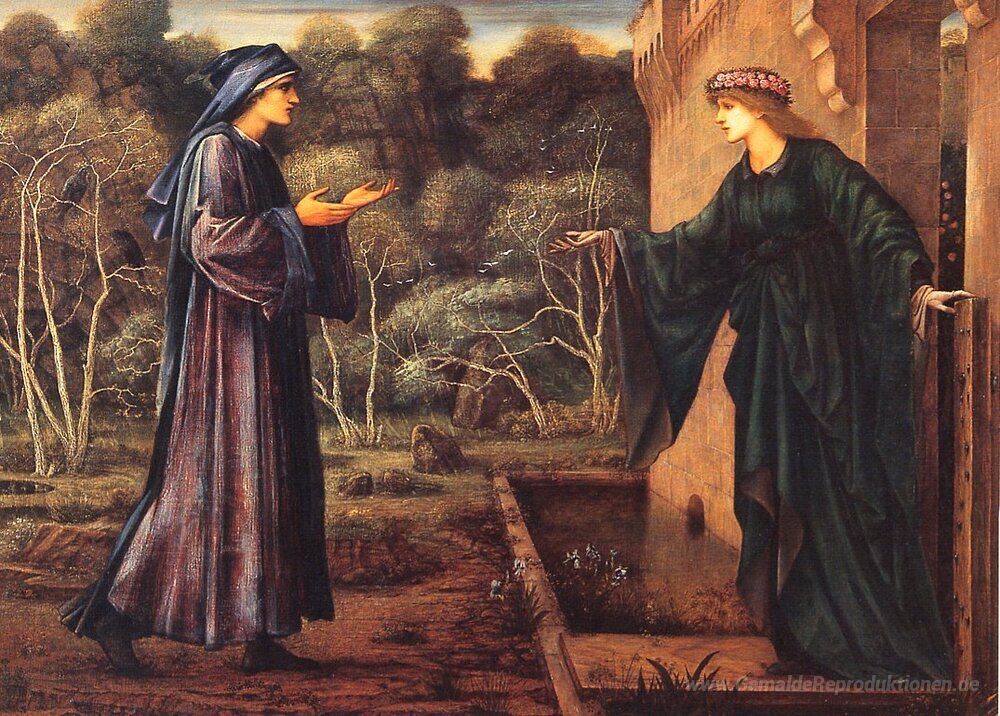 Wir bieten Ihnen eine handgefertigte Reproduktion auf Leinwand des berühmten Kunstwerks 'Der Pilger am Tor der Faulheit' von Edward Burne-Jones, aus dem Reproduktionsmuseum.
