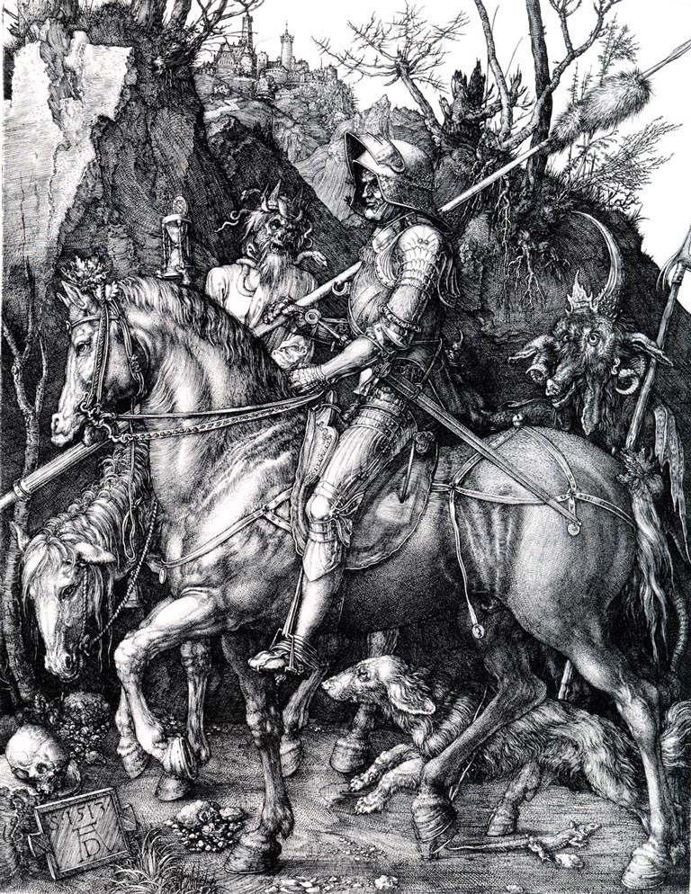 Wir bieten Ihnen eine handgefertigte Reproduktion auf Leinwand des berühmten Kunstwerks 'Der Ritter, Tod und Teufel' von Albrecht Durer, aus dem Reproduktionsmuseum.