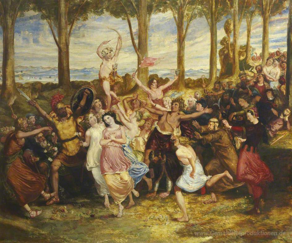 Wir bieten Ihnen eine handgefertigte Reproduktion auf Leinwand des berühmten Kunstwerks 'Der Triumph der Liebe' von David Scott, aus dem Reproduktionsmuseum.