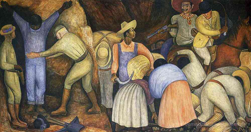 Wir bieten Ihnen eine handgefertigte Reproduktion auf Leinwand des berühmten Kunstwerks 'Die Ausbeuter' von Diego Rivera, aus dem Reproduktionsmuseum.