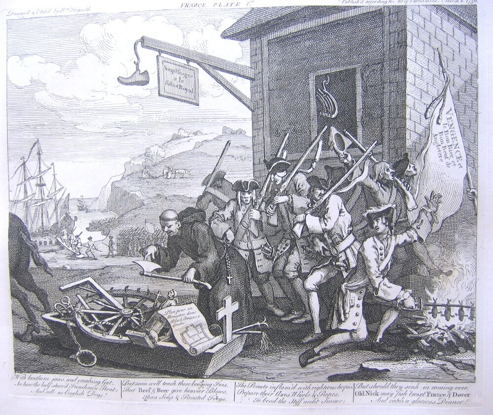 Wir bieten Ihnen eine handgefertigte Reproduktion auf Leinwand des berühmten Kunstwerks 'Die Invasion, Frankreich' von William Hogarth, aus dem Reproduktionsmuseum.