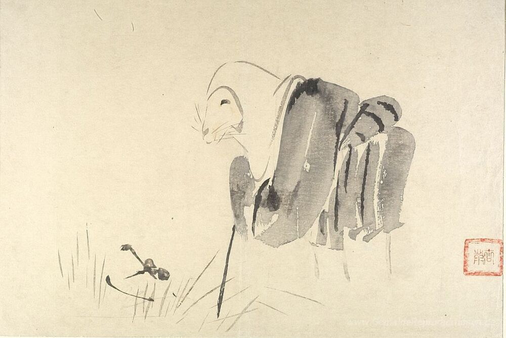 Wir bieten Ihnen eine handgefertigte Reproduktion auf Leinwand des berühmten Kunstwerks 'Eine Maus als Monk' von Shibata Zeshin, aus dem Reproduktionsmuseum.