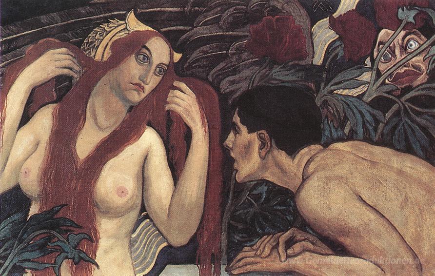 Wir bieten Ihnen eine handgefertigte Reproduktion auf Leinwand des berühmten Kunstwerks 'Eitelkeit' von Aladar Korosfoi-Kriesch, aus dem Reproduktionsmuseum.