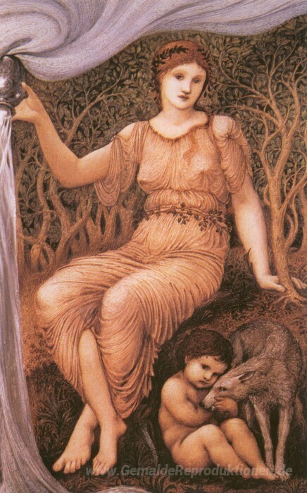 Wir bieten Ihnen eine handgefertigte Reproduktion auf Leinwand des berühmten Kunstwerks 'Erdmutter' von Edward Burne-Jones, aus dem Reproduktionsmuseum.