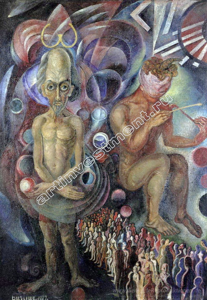 Wir bieten Ihnen eine handgefertigte Reproduktion auf Leinwand des berühmten Kunstwerks 'Father Time' von David Burliuk, aus dem Reproduktionsmuseum.