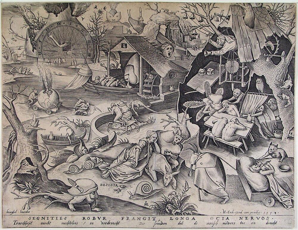 Wir bieten Ihnen eine handgefertigte Reproduktion auf Leinwand des berühmten Kunstwerks 'Faulheit' von Pieter Bruegel the Elder, aus dem Reproduktionsmuseum.
