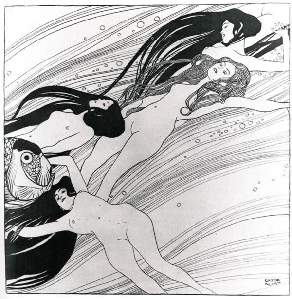 Wir bieten Ihnen eine handgefertigte Reproduktion auf Leinwand des berühmten Kunstwerks 'Fishblood' von Gustav Klimt, aus dem Reproduktionsmuseum.