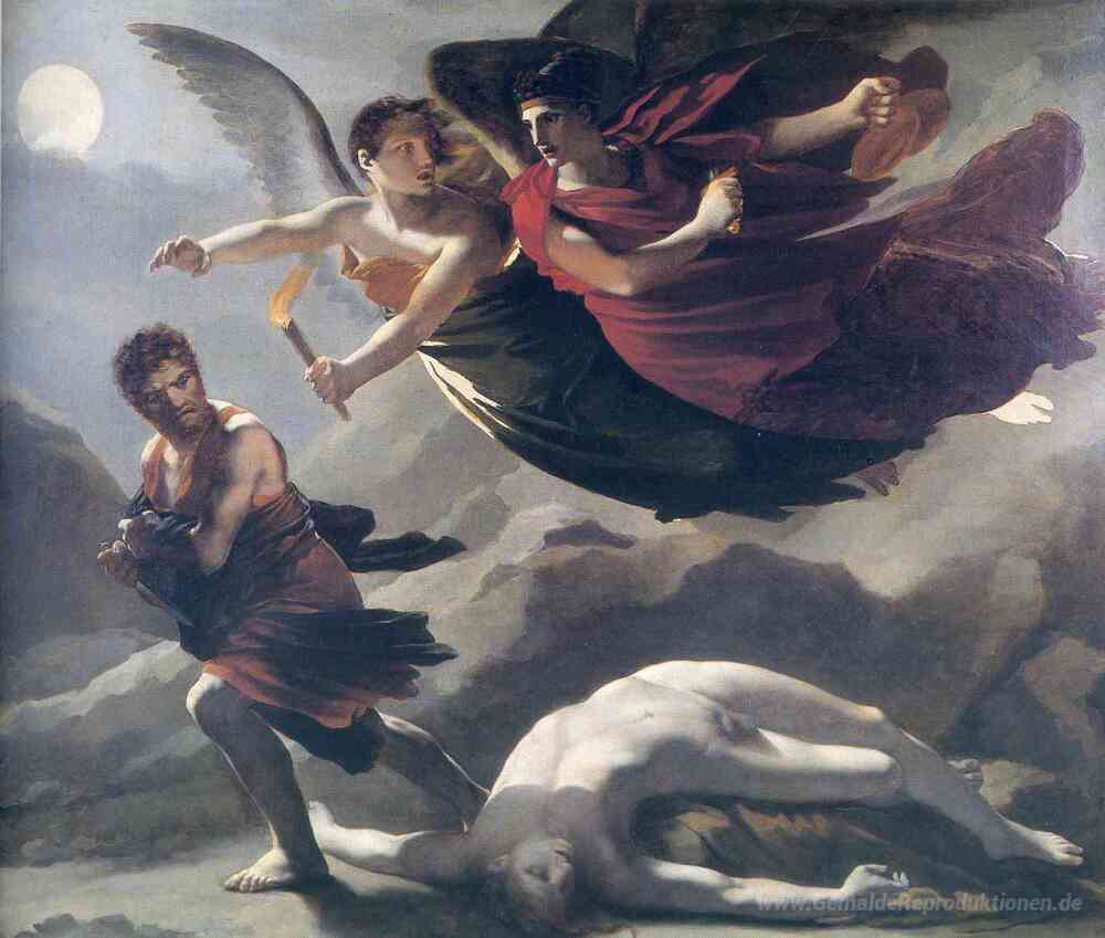 Wir bieten Ihnen eine handgefertigte Reproduktion auf Leinwand des berühmten Kunstwerks 'Gerechtigkeit und göttliche Rache, die Verbrechen' von Pierre-Paul Prud'hon, aus dem Reproduktionsmuseum.