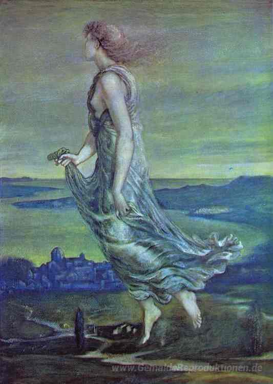 Wir bieten Ihnen eine handgefertigte Reproduktion auf Leinwand des berühmten Kunstwerks 'Hesperus. Der Abendstern' von Edward Burne-Jones, aus dem Reproduktionsmuseum.