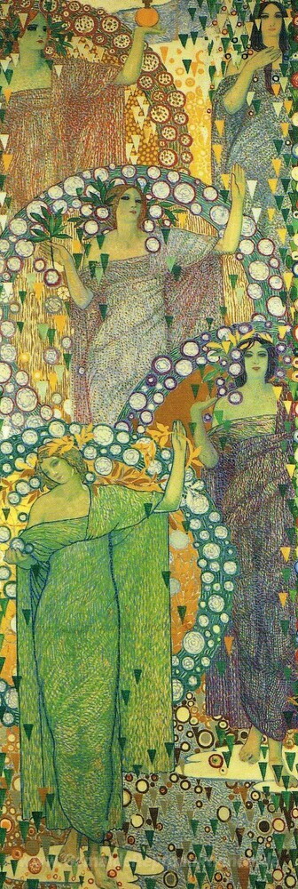 Wir bieten Ihnen eine handgefertigte Reproduktion auf Leinwand des berühmten Kunstwerks 'La Primavera che perennemente si rinnova (dettaglio)' von Galileo Chini, aus dem Reproduktionsmuseum.