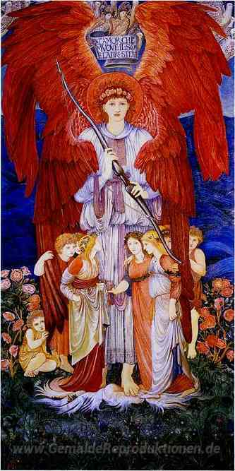 Wir bieten Ihnen eine handgefertigte Reproduktion auf Leinwand des berühmten Kunstwerks 'Liebe' von Edward Burne-Jones, aus dem Reproduktionsmuseum.