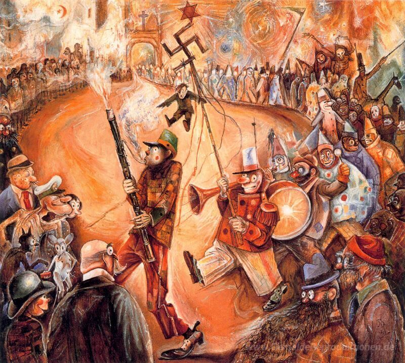 Wir bieten Ihnen eine handgefertigte Reproduktion auf Leinwand des berühmten Kunstwerks 'März der Clowns' von Albert Bloch, aus dem Reproduktionsmuseum.