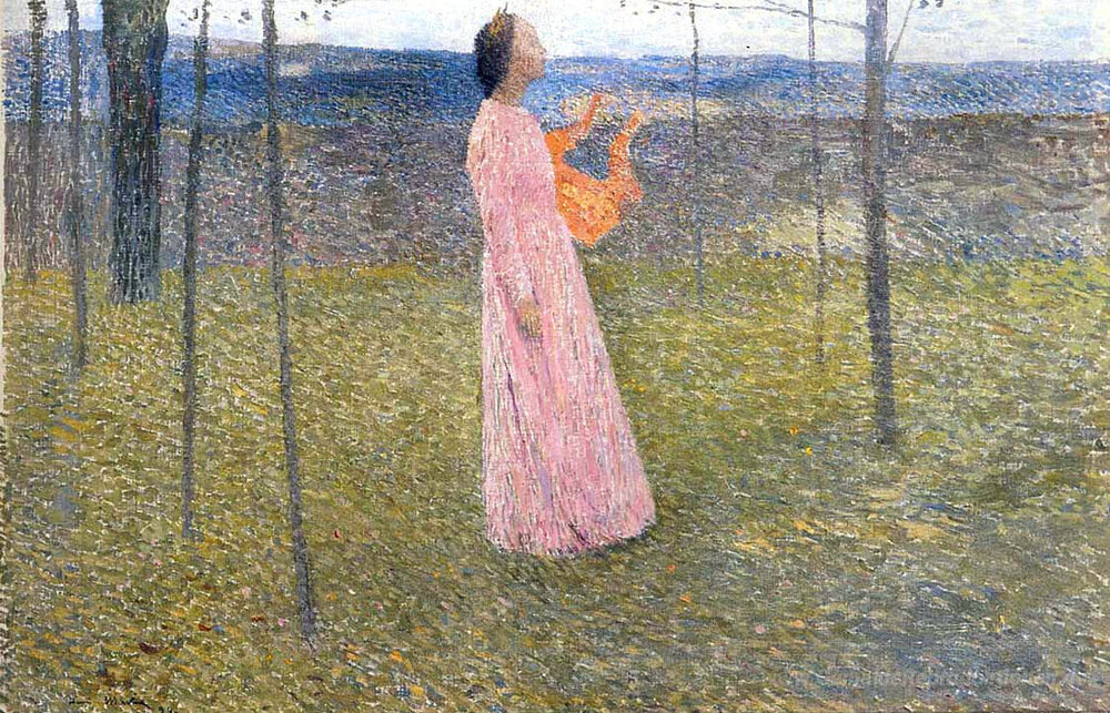Wir bieten Ihnen eine handgefertigte Reproduktion auf Leinwand des berühmten Kunstwerks 'Muse in the Fields' von Henri Martin, aus dem Reproduktionsmuseum.