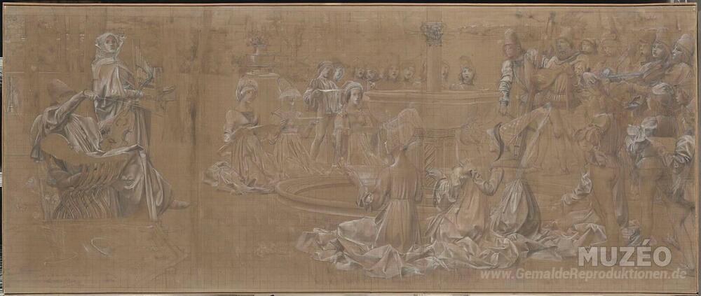Wir bieten Ihnen eine handgefertigte Reproduktion auf Leinwand des berühmten Kunstwerks 'Musik' von Luc-Olivier Merson, aus dem Reproduktionsmuseum.