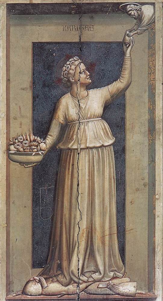 Wir bieten Ihnen eine handgefertigte Reproduktion auf Leinwand des berühmten Kunstwerks 'Nächstenliebe' von Giotto, aus dem Reproduktionsmuseum.