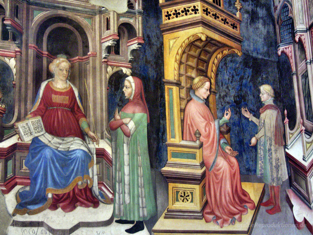 Wir bieten Ihnen eine handgefertigte Reproduktion auf Leinwand des berühmten Kunstwerks 'Philosophie und Grammatik' von Gentile da Fabriano, aus dem Reproduktionsmuseum.
