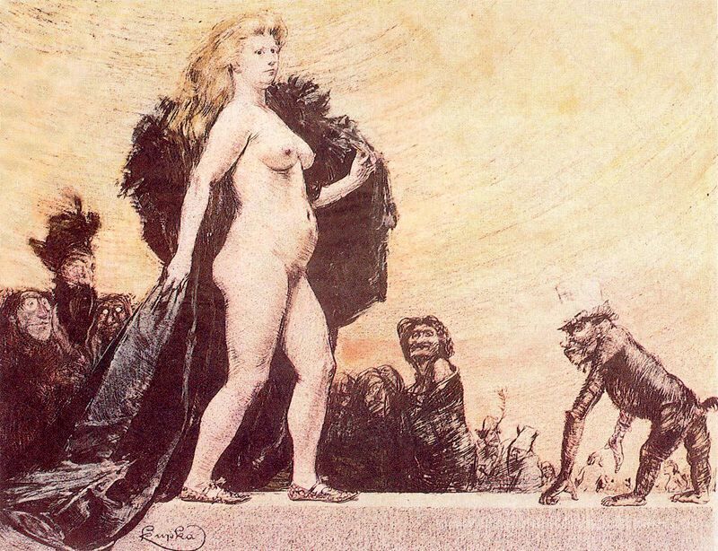 Wir bieten Ihnen eine handgefertigte Reproduktion auf Leinwand des berühmten Kunstwerks 'Prozession' von Frantisek Kupka, aus dem Reproduktionsmuseum.