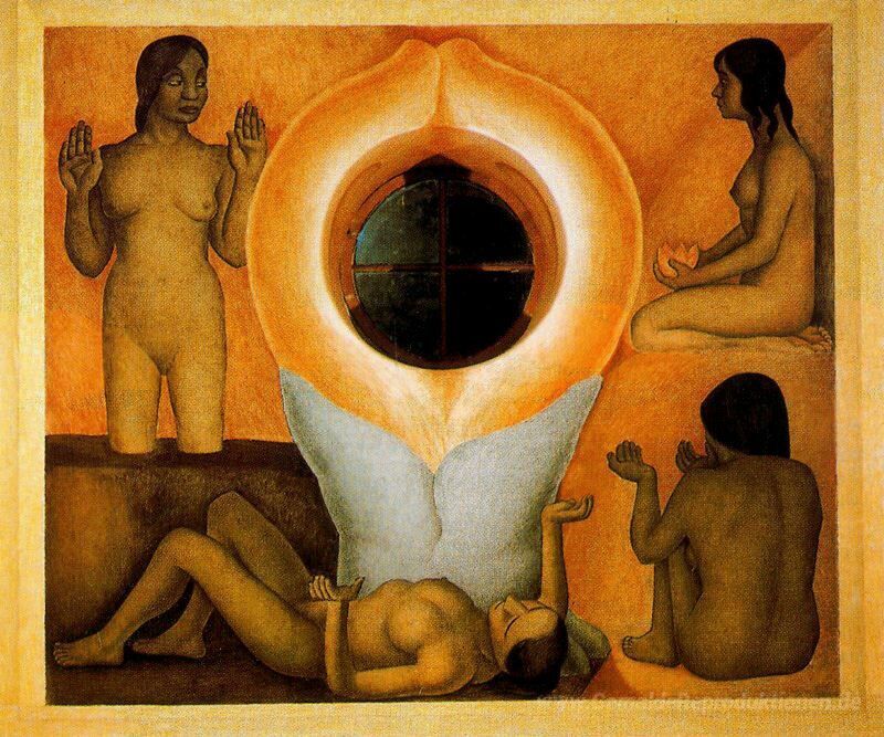 Wir bieten Ihnen eine handgefertigte Reproduktion auf Leinwand des berühmten Kunstwerks 'Reifung' von Diego Rivera, aus dem Reproduktionsmuseum.