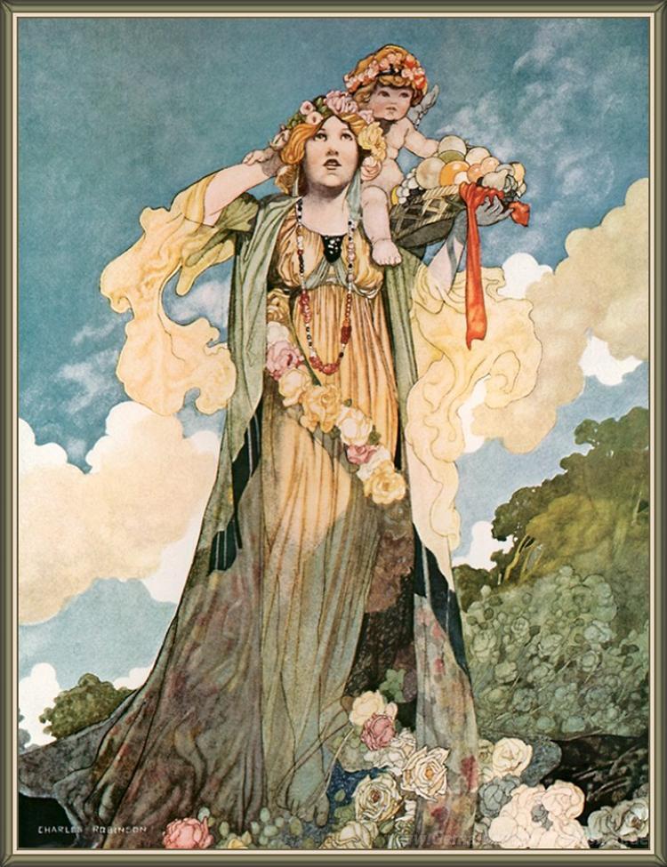 Wir bieten Ihnen eine handgefertigte Reproduktion auf Leinwand des berühmten Kunstwerks 'Sommer' von Charles Robinson, aus dem Reproduktionsmuseum.