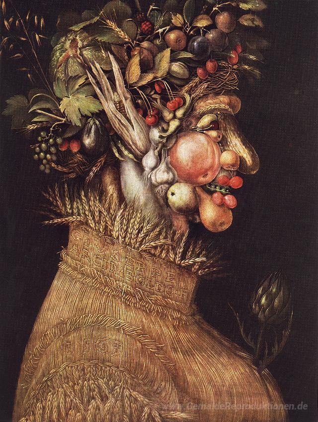 Wir bieten Ihnen eine handgefertigte Reproduktion auf Leinwand des berühmten Kunstwerks 'Sommer' von Giuseppe Arcimboldo, aus dem Reproduktionsmuseum.