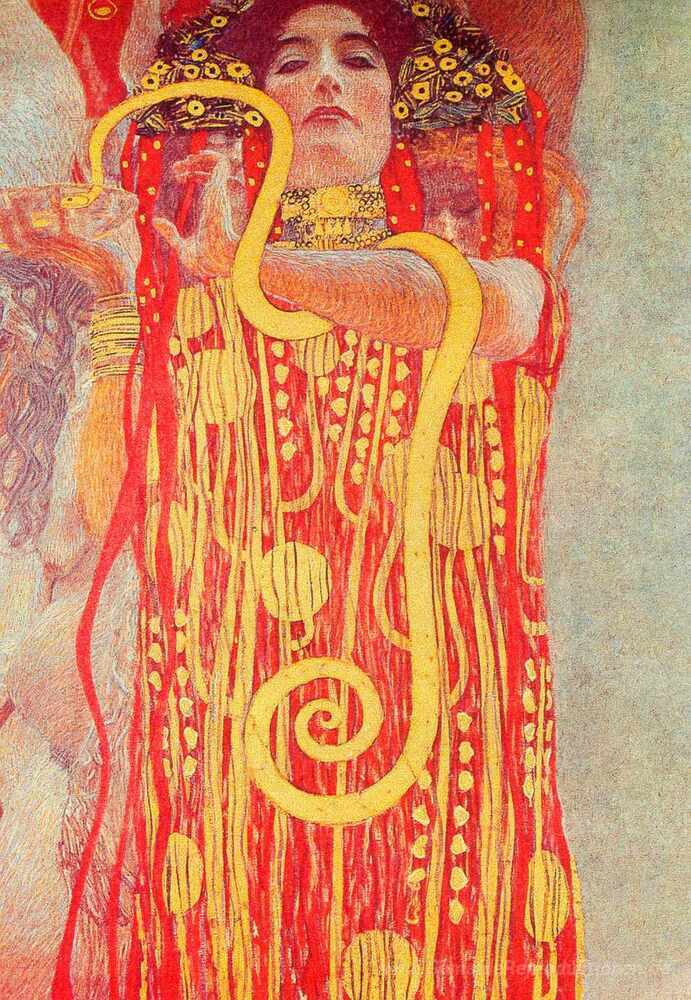 Wir bieten Ihnen eine handgefertigte Reproduktion auf Leinwand des berühmten Kunstwerks 'Universität Wien Deckengemälde (Medizin), Detail zeigt Hygieia' von Gustav Klimt, aus dem Reproduktionsmuseum.