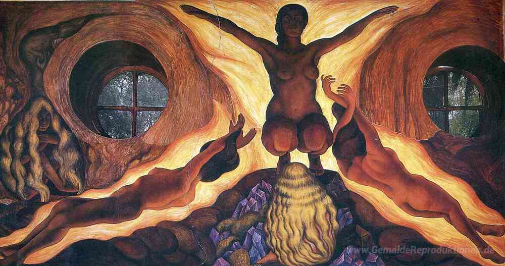 Wir bieten Ihnen eine handgefertigte Reproduktion auf Leinwand des berühmten Kunstwerks 'Unterirdischen Kräfte' von Diego Rivera, aus dem Reproduktionsmuseum.