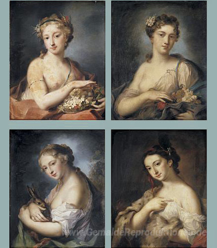Wir bieten Ihnen eine handgefertigte Reproduktion auf Leinwand des berühmten Kunstwerks 'Vier Jahreszeiten' von Rosalba Carriera, aus dem Reproduktionsmuseum.
