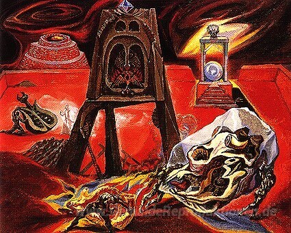 Wir bieten Ihnen eine handgefertigte Reproduktion auf Leinwand des berühmten Kunstwerks 'Die Werkstatt der Dedalus' von Andre Masson, aus dem Reproduktionsmuseum.