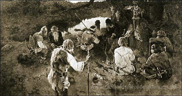 Wir bieten Ihnen eine handgefertigte Reproduktion auf Leinwand des berühmten Kunstwerks 'Älteste Beisammensein' von Nicholas Roerich, aus dem Reproduktionsmuseum.