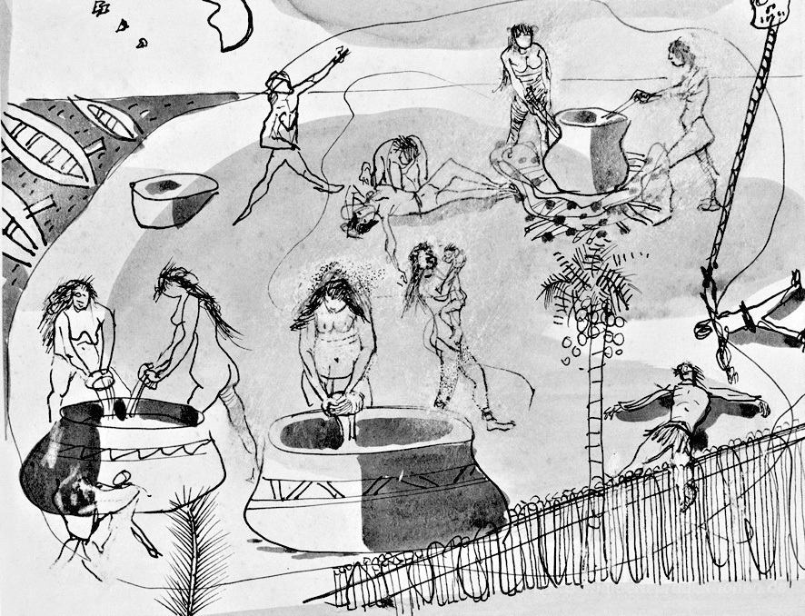 Wir bieten Ihnen eine handgefertigte Reproduktion auf Leinwand des berühmten Kunstwerks 'Índias' von Candido Portinari, aus dem Reproduktionsmuseum.