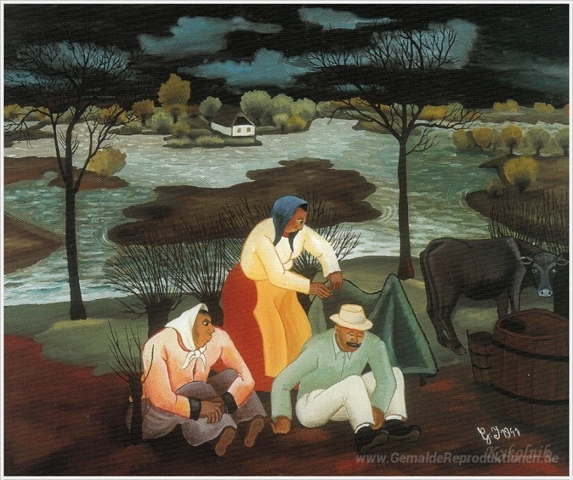 Wir bieten Ihnen eine handgefertigte Reproduktion auf Leinwand des berühmten Kunstwerks 'Über Nacht' von Ivan Generalic, aus dem Reproduktionsmuseum.