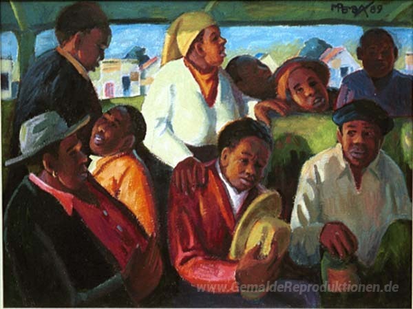 Wir bieten Ihnen eine handgefertigte Reproduktion auf Leinwand des berühmten Kunstwerks 'Überlast' von George Pemba, aus dem Reproduktionsmuseum.
